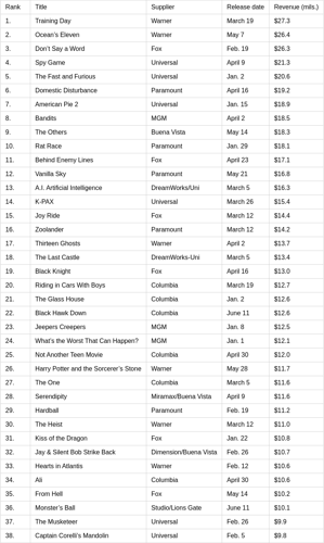featuring hits such as Ocean's Eleven and Black Hawk Down.