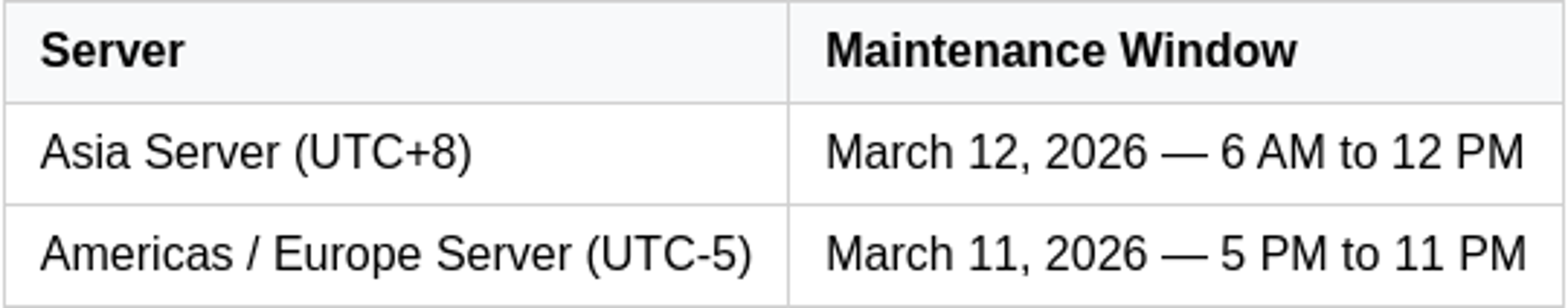 Access to the game will be temporarily unavailable during the scheduled maintenance period.