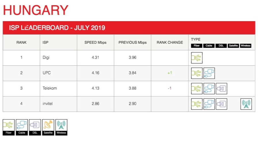 Similar upward movement was observed in Hungary's country ranking for the same period.Several territories experienced speed reductions during this period.