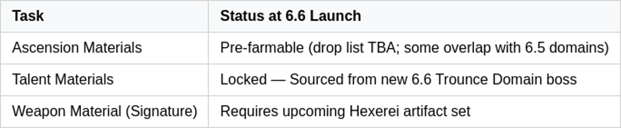 Players can begin pre-farming certain ascension materials immediately