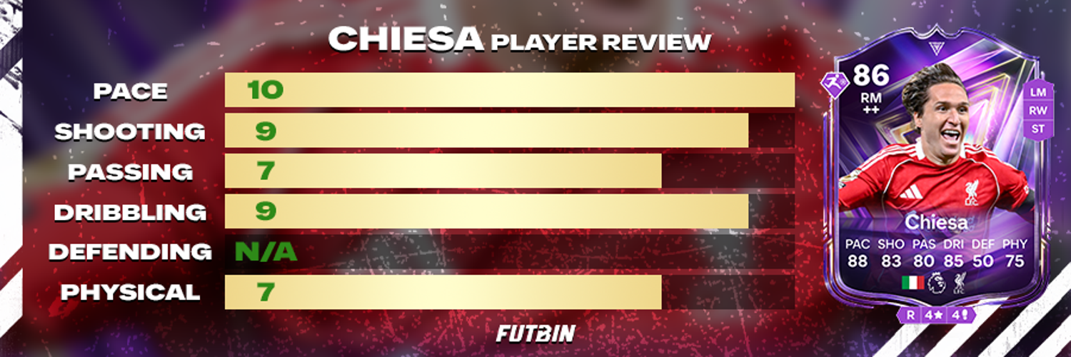 The FC Pro Live edition of Chiesa now features incremental improvements in Pace, Dribbling, and Shooting.