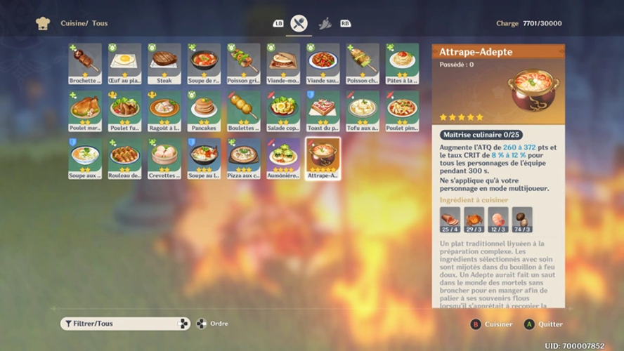 La cuisine dans Genshin Impact ne sert pas qu'à restaurer des PV : certaines recettes accordent des bonus de statistiques temporaires, très utiles en combat.